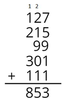 127 + 215 + 99 + 301 + 111 = 853 zł.