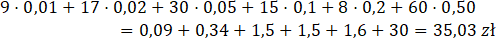 Pomnóż ilość monet przez ich nominał, a potem zsumuj wyniki.