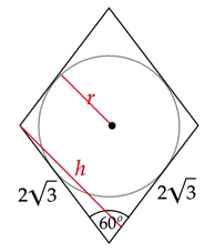 Zauważ, że promień okręgu wpisanego w romb stanowi połowę długości jego wysokości. Na tej podstawie oblicz