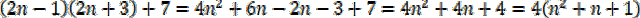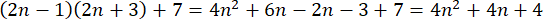 Zapisz iloczyn liczb 2n – 1 i 2n + 3 powiększony o 7: