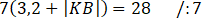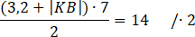 Podstaw znane wartości pod powyższe pole i oblicz z niego długość boku KB.