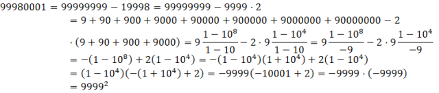 W tym zadaniu musisz wykazać, że liczba 99 980 001 jest kwadratem pewnej liczby naturalnej.