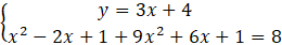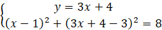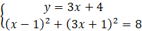 Aby wyznaczyć punkty wspólne, rozwiąż układ równań z dwoma danymi równaniami. Powstałe rozwiązania zapisz jako współrzędne punktów.