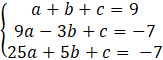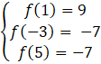 Ponieważ wykres funkcji kwadratowej jest symetryczny, odcięta wierzchołka paraboli jest równa średniej arytmetycznej dwóch dowolnych argumentów, dla których funkcja przyjmuje równe wartości. Wiedząc, że funkcja kwadratowa przyjmuje wartość największą w wierzchołku paraboli (jeśli istnieje największa wartość), możesz zapisać równanie f(1) = 9. Na podstawie znanych wartości funkcji zapisz układ równań. Rozwiąż układ, a następnie zapisz wzór funkcji w postaci ogólnej i iloczynowej.