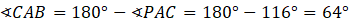 Na podstawie znajomości miar kątów ACB i CAB wyznacz miarę kąta ABC.