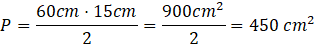 Oblicz pole deltoidu o przekątnych 60 cm i 15 cm.