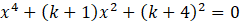 Aby rozwiązać równanie, wykonaj podstawienie x2 = t, gdzie t jest liczbą nieujemną. Aby wyjściowe równanie miało trzy różne rozwiązania, równanie