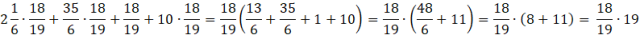 Wyłącz powtarzający się ułamek w każdym czynniku przed nawias, gdy w czynniku jest tylko ten ułamek, pamiętaj, że zostaje 1.