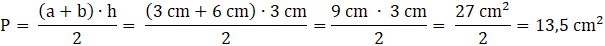 Po ocenieniu prawidłowości stwierdzenia przez Asię oraz policzeniu innych wymiarów trapezu powierzchnia policzonego pola wynosi 13,5 cm2.