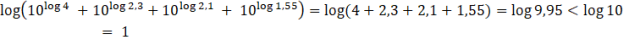 Skorzystaj z tablic logarytmów dziesiętnych wartości poszczególnych logarytmów i pokazać, że wyrażeni jest mniejsze od 1.