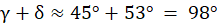Trójkąt 4: kąt przy lewym wierzchołku – α, kąt przy prawym wierzchołku – β, kąty przy górnym wierzchołku po narysowaniu wysokości (kolejno od lewej) – γ oraz δ.
