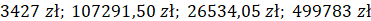 3000 zł; 107000 zł; 27000 zł; 500000 zł