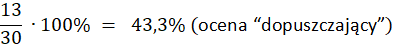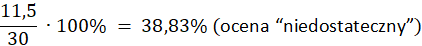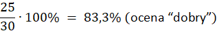 Aby przeliczyć punkty na procenty, podziel ilość punktów ucznia przez maksymalną ilość punktów, a następnie pomnóż przez 100%. Z tabelki oceniania odczytasz wtedy oceny: