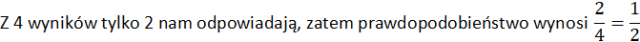 Losując pierwszą cyfrę potrzebujemy wylosować cyfrę 3 lub 4, ponieważ losując cyfrę 1 wynik będzie mniejszy niż 25 (12, 13, 14), tak samo losując cyfrę 2 (21, 23, 24). Jeśli wylosujemy 3 lub 4, każdy wynik będzie większy niż 25 (będzie >30 lub >40). Zatem losowanie pierwszej cyfry decyduje w całości o tym, czy ułożymy cyfrę większą niż 25.
