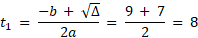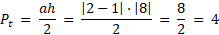 , gdzie a jest podstawą wyznaczoną przez odległość między punktami przecięcia osi OX, natomiast h jest wysokością wyznaczoną przez odległość punktu przecięcia z osią OY od środka układu. Odległość ma wartość nieujemną, więc stosujemy wartość bezwzględną