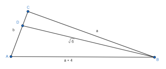 Niech |AB| = a + 4, |BC| = a, |AC| = b. |CD| : |DA| = 1 : 3, więc