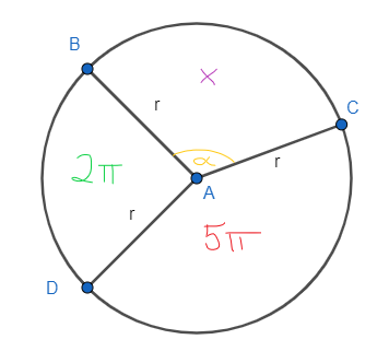 Podzielono koło o promieniu 3 na trzy wycinki, z których pola dwóch są równe 2π i 5π. Oblicz długość łuku odpowiadającego trzeciemu wycinkowi.