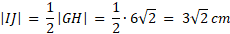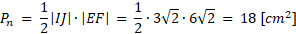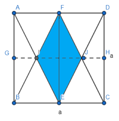 Zacznij od obliczenia długości boku kwadratu ze wzoru na przekątną. Zauważ, że figura o niebieskim polu jest rombem o przekątnych |EF| i |IJ|. Oblicz jej pole ze wzoru na pole rombu.