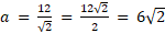Wewnątrz kwadratu o przekątnej długości 12 cm umieszczono dwa trójkąty równoramienne. Podstawami tych trójkątów są przeciwległe boki kwadratu, a wierzchołki między ramionami są środkami boków kwadratu, jak przedstawiono na rysunku obok. Oblicz pole obszaru, który jest częścią wspólną tych trójkątów.