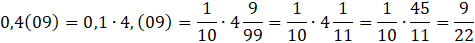 Liczbę 0,4(09) musisz zamienić na iloczyn 0,1 i reszty, aby okres rozwinięcia występował od razu po przecinku. Dzięki temu będziesz w łatwy sposób w stanie zamienić wszystkie ułamki dziesiętne okresowe na zwykłe i wyliczyć wartość całego wyrażenia.