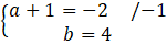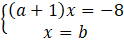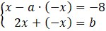 Na początku tego zadania musisz skorzystać z warunku na liczbę przeciwną – liczba przeciwna do pewnej liczby x to liczba x przemnożona przez -1. Następnie musisz podstawić za y w obu równaniach liczbę przeciwną do x (-x). Z drugiego równania możesz otrzymać wartość x, która jest współczynnikiem b. Musisz podstawić tę wartość do pierwszego równania i wyłączyć z niego wspólny czynnik przed nawias. W wyniku tych działań, po lewej stronie znajduje się iloczyn dwóch liczb, a po prawej liczba -8. Musisz wymyśleć dowolną parę liczb, której wynikiem mnożenia jest -8.