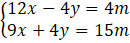12x – 4y + 9x +4y = 4m + 15m