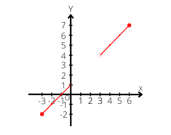 Funkcja jest dana wzorem x + 1. Aby naszkicować wykres funkcji powinieneś wyznaczyć jak najwięcej jej wartości w danej dziedzinie. Musisz policzyć wartości wyrażenia x + 1 dla liczb z krańca dziedziny. Następnie powinieneś zaznaczyć wszystkie wyznaczone punkty w układzie współrzędnych i poprowadzić przez nie proste, które kończą się na krańcach dziedziny. Wartości funkcji na krańcach dziedziny, które do niej należą muszą być zaznaczone zamalowanym kółkiem, a te które do niej nie należą – niezamalowanym okręgiem.