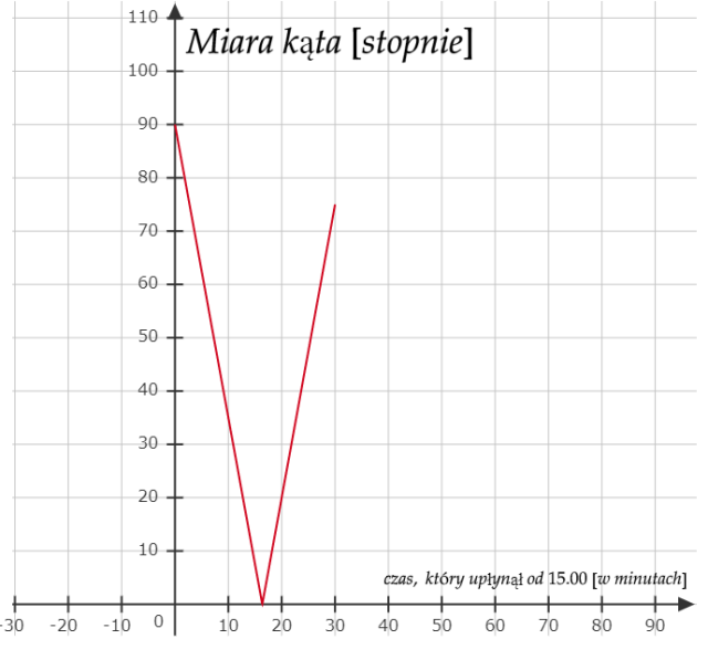 W tym zadaniu musisz wyznaczyć wzór, z którego możesz odczytać miarę kąta pomiędzy wskazówką minutową i godzinową w zależności od czasu pomiędzy