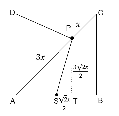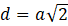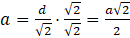 Na początek wyznacz długość boku kwadratu, korzystając z tego, że przekątna w kwadracie wyraża się wzorem