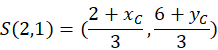 Punkt S(2, 1) jest środkiem ciężkości trójkąta ABC, a punkt D(1, 3) jest środkiem odcinka AB. W tym zadaniu musisz obliczyć współrzędne punktu C.