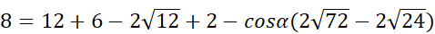 Boki trójkąta mają długość: a = √8, b = √12, c = √6 – √2. W tym zadaniu musisz obliczyć miary kątów tego trójkąta.