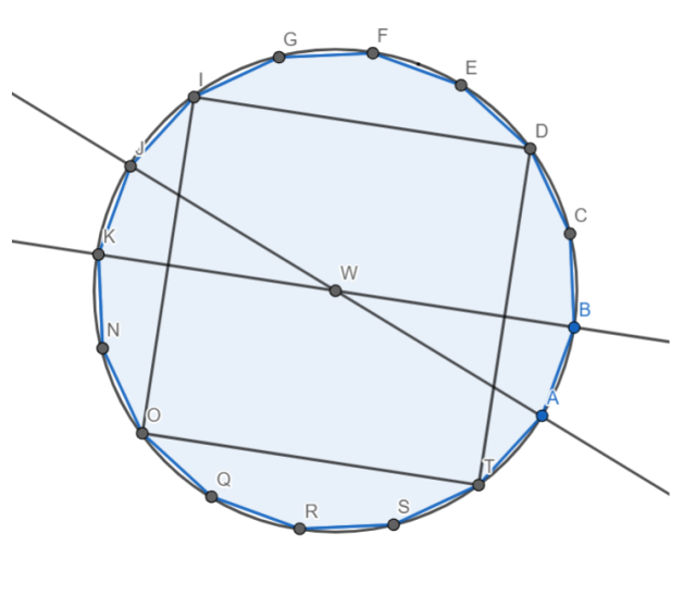 4. Połącz wszystkie punkty – powstała figura to szesnastokąt foremny.