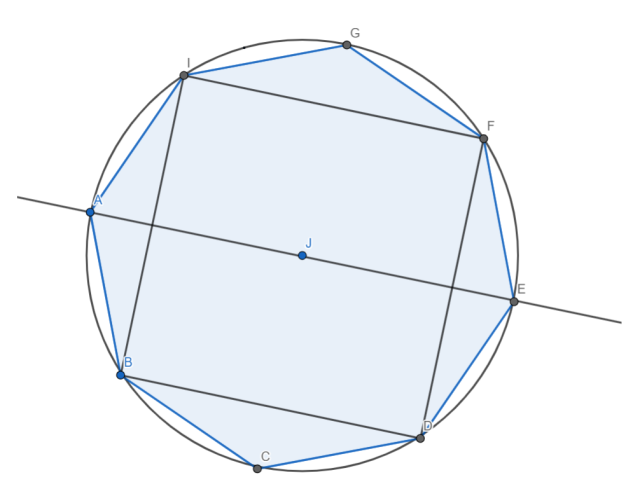 2. Nakreśl symetralną dowolnego boku ośmiokąta – wyznaczy ona jego środek.