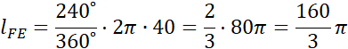 2α i β tworzą razem kąt pełny, więc β = 360˚ - 2 ∙ 60˚ = 240˚