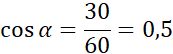 Cosinusem kąta α nazywamy stosunek długości przyprostokątnej leżącej przy kącie α do długości przeciwprostokątnej.