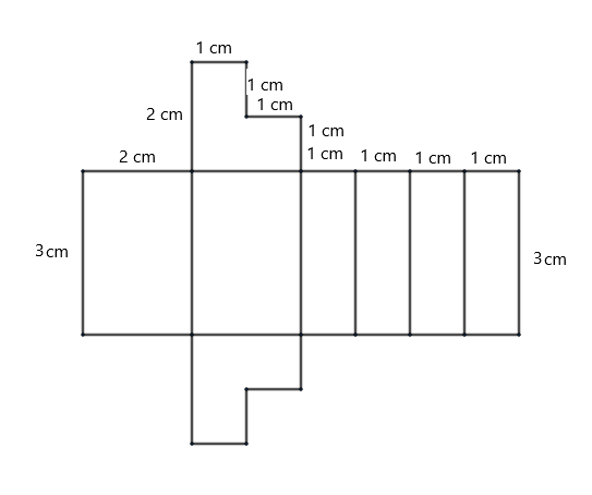Przedstaw na rysunku siatkę graniastosłupa prostego, którego krawędź boczna ma długość 3 cm, a podstawa ma kształt i wymiary wielokąta przedstawionego na załączonym rysunku.