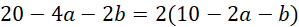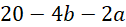 Waldek kupił 4 ciastka po a złotych za sztukę i 2 butelki soku po b złotych za butelkę. Podaj, ile złotych reszty otrzyma, jeżeli dał sklepikarzowi 20 zł.