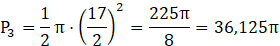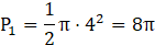 Obliczamy pole pierwszego trójkąta. Następnie, korzystając z twierdzenia Pitagorasa wyliczamy długość przeciwprostokątnej tego trójkąta. Obliczamy pole każdego z półksiężyców i je dodajemy.