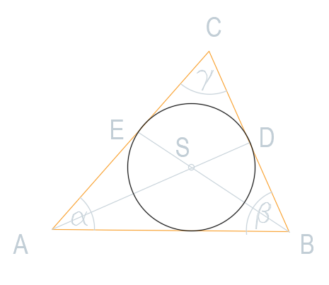 Dany trójkąt o miarach kątów α = |∢BAC|, β = |<∢ABC | oraz g = |∢ACB|. Okrąg o środku w punkcie S został wpisany w ten trójkąt. Proste poprowadzone z S przez punkty A i B przecinają boki BC i AC w punktach D i E. Udowodnij, że jeśli α + β = 2g to na czworokącie DCES można opisać okrąg.