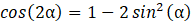 Przekształć wzór na cosinus podwojonego kąta, by wyznaczyć wzór na sinus polowy kąta: