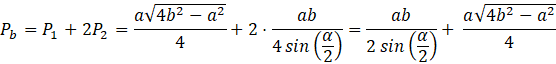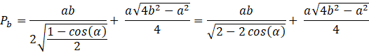 Dany jest ostrosłup o podstawie trójkąta równoramiennego. Podstawa tego trójkąta ma długość 𝑎. Krawędzie boczne bryły mają długość 𝑏, natomiast kąt dwuścienny między większymi ścianami bocznymi jest równy α. Oblicz pole powierzchni bocznej tego ostrosłupa.