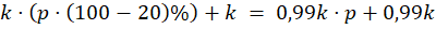 W banku A kwota zgromadzona po roku jest równa odsetkom, czyli kwocie k pomnożonej razy stopę p razy (100 – 20)% podatku, plus kwocie początkowej k. W banku B kwota zgromadzona po roku jest równa odsetkom pod początkowej kwoty 0,99k równym