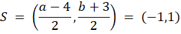Punkt S to środek odcinka AB. Wyznaczamy współrzędne punktu