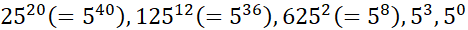 Każdą z liczb można przedstawić jako potęgę piątki.