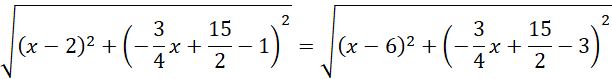 Oblicz obwód trójkąta o końcach podstawy w danych punktach oraz ramieniu zawartym w podanej prostej.