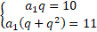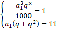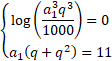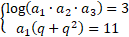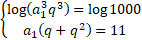 Przypomnij sobie, że kiedy dodajemy logarytmy o tej samej podstawie, to liczby logarytmowane mnożymy. Obliczamy q z układu równań: