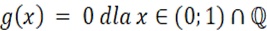 Dla funkcji g: Aby wartość funkcji wynosiła 0 argument nie może przekroczyć 1 oraz nie może być mniejszy bądź równy 0, ponieważ wtedy wartość będzie mniejsza od 0.