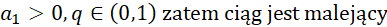 Ciąg jest geometryczny i masz podane dwa pierwsze wyrazy. Można więc wyliczyć iloraz ciągu.