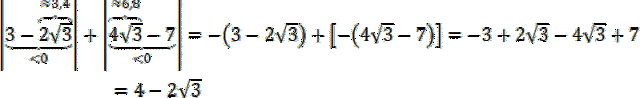 Ustal znak każdego wyrażenia znajdującego się w wartości bezwzględnej w podanym działaniu i wyznacz ją. Zauważ, że jeśli jest to liczba dodatnia, to jej wartość bezwzględna jest tą liczbą, a jeśli jest to liczba ujemna, to jej wartością bezwzględną jest liczba przeciwna.