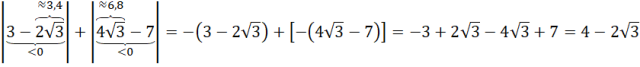 Ustal znak każdego wyrażenia znajdującego się w wartości bezwzględnej w podanym działaniu i wyznacz ją. Zauważ, że jeśli jest to liczba dodatnia, to jej wartość bezwzględna jest tą liczbą, a jeśli jest to liczba ujemna, to jej wartością bezwzględną jest liczba przeciwna.